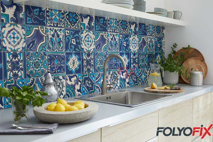 Tezgah Arası (Ara Fayans) mutfakta evyeye ve musluğa yakın bir alan olduğundan doğal olarak akıllara yapışkanlı folyonun sudan etlenip etkilenmeyeceği geliyor. Tezgah Arası Folyolar pvc yapısı sayesinde su, nem ve deterjandan etkilenmez. Gönül rahatlığıyla ıslak alanlarda kullanabilirsiniz.